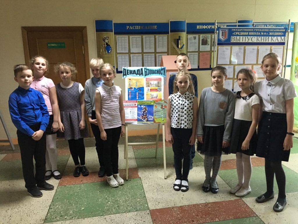 В учреждении образования с 10.05.2019 по 22.05.2019 проходила «Декада безопасности». В ходе «Декады безопасности» прошли встречи учащихся с представителя Жодинского ГОВД, отделения ГАИ Жодинского ГОВД, Белоруской железной дороги. Для учащихся был организован показ видеофильма «Соблюдаем безопасность на воде» с предсеансовой беседой