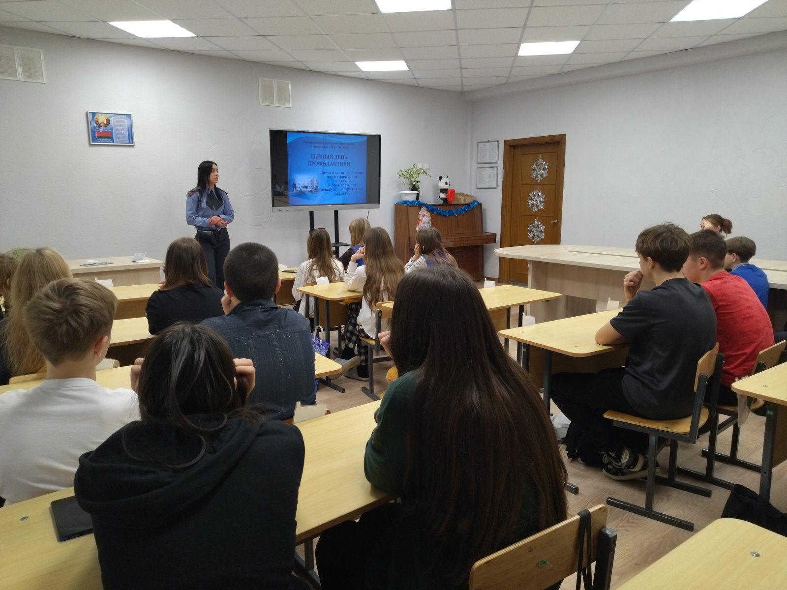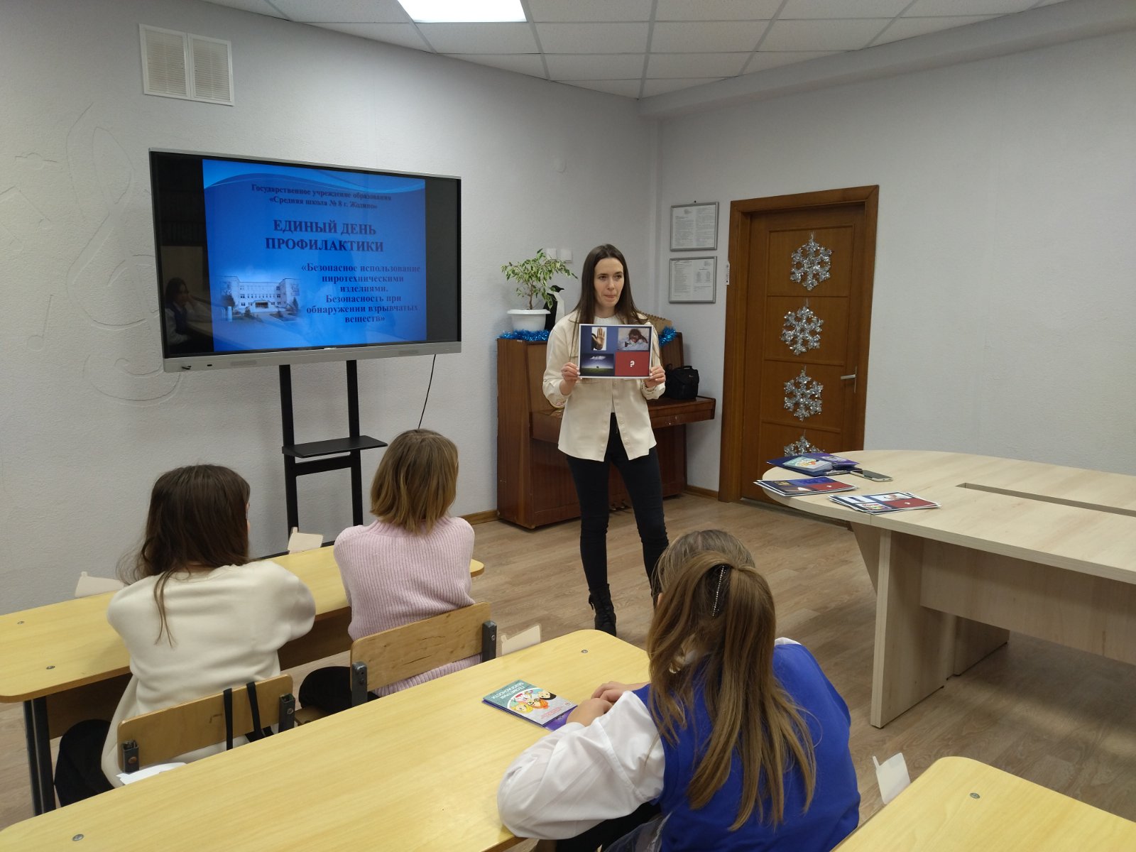 В рамках декады «Безопасные каникулы. Зима — 2022» в учреждении образования состоялись встречи учащихся с врачом-валеологом, которая провела беседу о профилактике травматизма в зимний период, с участковым инспектором по делам несовершеннолетних, которая напомнила ребятам об ответственности несовершеннолетних за совершение преступлений и правонарушений, с сотрудником Жодинского ГОЧС, где ребятам было рассказано о безопасном использовании пиротехнических изделий.