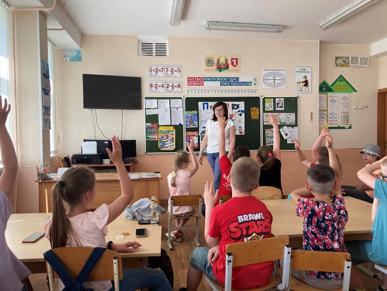 Сегодня дети посетили кинотеатр «Юность», посмотрели мультфильм «Смешарики и друзья в кино. Выпуск 2». Педагог-психолог провела интерактивное занятие «Праздник дружбы» (в рамках республиканской акции «Год народного единства – год добрых дел»). Учитель физической культуры и здоровья провел спортивно-развлекательную программу с элементами ориентирования на местности. Затем воспитатели провели с ребятами интерактивное занятие по формированию умения жить в поликультурном мире. После обеда учитель физической культуры и здоровья провела спортивную игру «Пионербол», а в конце дня воспитатели провели беседу «Культура на службе у человека».