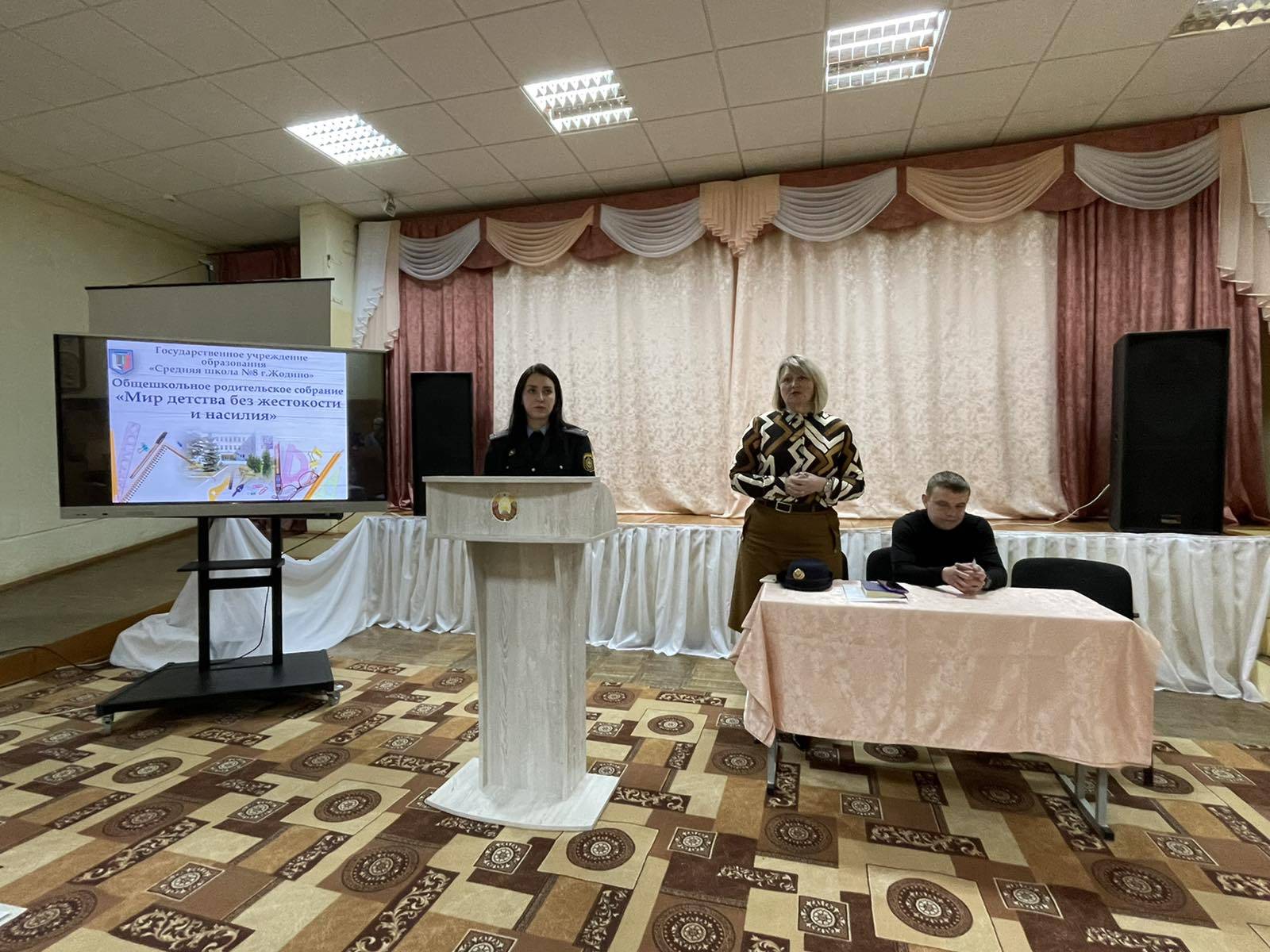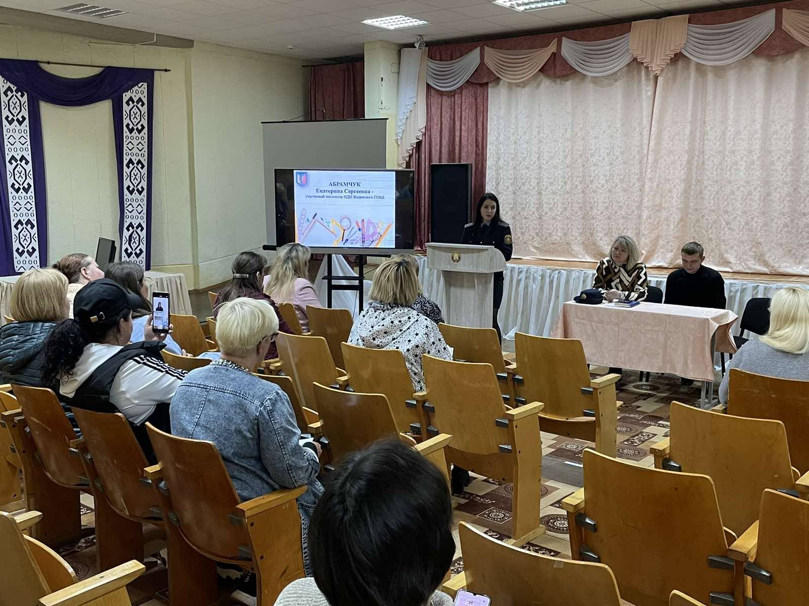 В нашей школе 11.05.2022 прошло общешкольное родительское собрание, на котором присутствовали: Абрамчук Е.С. — участковый инспектор инспекции по делам несовершеннолетних, Саникович В. А.- сотрудник отделения наркоконтроля и противодействию торговле людьми Жодинского ГОВД. На собрании были рассмотрены вопросы профилактики совершения преступлений против половой неприкосновенности или половой свободы, защите детей от преступных посягательств, занятости и безопасного поведения несовершеннолетних во время летних каникул, ответственности родителей за воспитание и содержание детей и т.д.