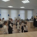 Учащиеся 1-х классов пришли в школу в праздничном деловом стиле одежды. Именно в этот день их принимали в дружную семью нашей восьмой школы.
