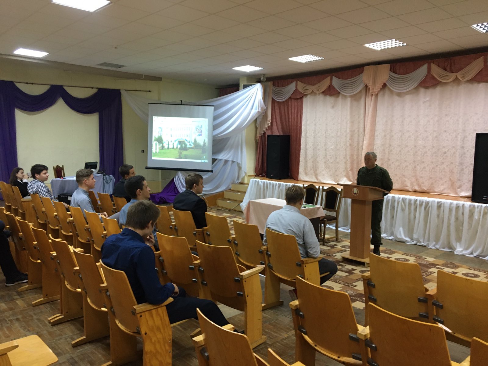 Главная Профориентация Профориентация Профориентационная встреча учащихся 11 классов 12.10.2020 29 сентября в нашей школе прошла профориентационная встреча учащихся 11 классов нашей школы и школ ГОРОДА Жодино с представителямем 65 автомобильной бригады войсковой части 28729 г. Жодино Кулешовым А. В.