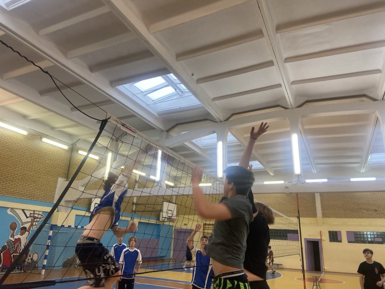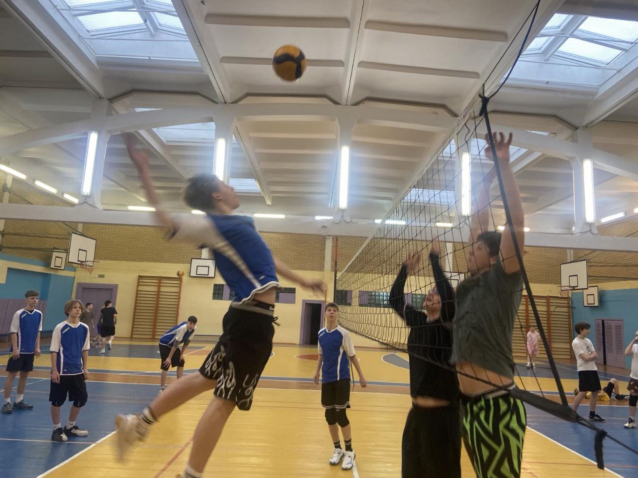 Старт спортивному марафону был дан в спортзале школы, где развернулись нешуточные баталии. Первым событием дня стало первенство школы по волейболу среди сборных команд 8-х и 9-х классов.