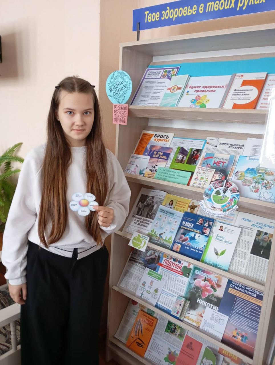 В этот день ребята окунулись в мир здоровья, правильного питания и полезных привычек. В школьной библиотеке им была представлена информация о том, как отрицательно влияют на организм вредные привычки и как улучшают работоспособность, дисциплинируют человека, укрепляют его здоровье полезные привычки. О том, как важно вести активный и здоровый образ жизни, закаливаться, заниматься физкультурой, соблюдать правила личной гигиены. Обсуждая здоровые привычки, ребята рассказали, о любимых продуктах питания, какими видами спорта они увлекаются, как проводят своё свободное время. Ребята создали символический «Букет здоровья», где на лепестках распустились полезные привычки, олицетворяющие путь к долгой и счастливой жизни. И пришли к выводу о том, что здоровье – это отсутствие вредных привычек, а здоровое будущее – это настоящее с полезными привычками.
