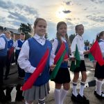 А чтобы сердца учащихся, педагогов, родителей и сердце нашего школьного дома были едины, им предложили окунуться в атмосферу дружбы и ступить на порог родной школы, пройдя под ручниками. Право первыми пройти под ручниками и войти в родную школу на первый урок, на тему: «Нам есть чем гордиться, нам есть что беречь» предоставили нашим самым маленьким ученикам — первоклассникам в сопровождении учащихся 11-х классов!