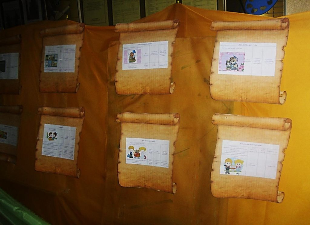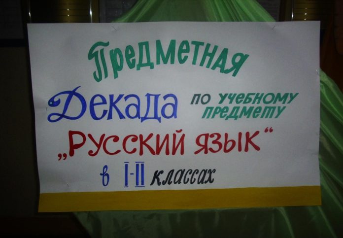 На стенде «Наша жизнь» были размещены объявление и план проведения мероприятий во время предметно-методической декады по учебному предмету «Русский язык» в I-II  классах, группе продлённого дня (ГПД). Каждый день декады посвящён определённой теме, в рамках которой проводились занимательные уроки и внеклассные мероприятия, продемонстрировавшие высокий уровень знаний младших школьников и профессиональное мастерство педагогов начальных классов. При этом все участники: и педагоги, и учащиеся – проявили хорошие организаторские способности, активность, умение создать праздничную творческую атмосферу.