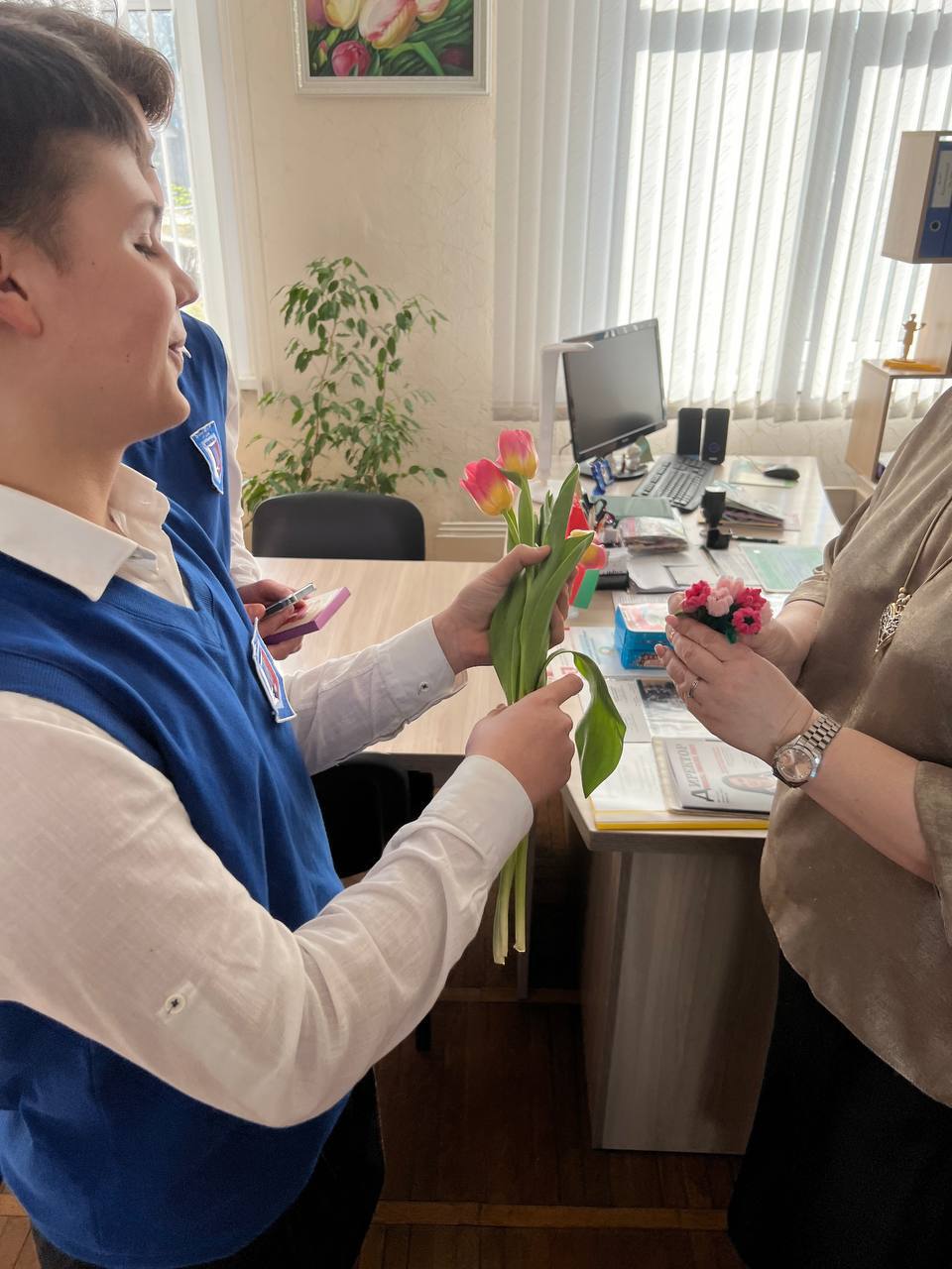 🌷🌷🌷В преддверии 8 марта, в нашей школе утро началось с праздничного поздравления самой прекрасной половины нашей школы.Совет старшеклассников школы поздравил учителей и работников школы с праздником. В фойе школы звучала музыка, ребята раздавали цветы сделанные своими руками, а в «Корзину добрых пожеланий» положили свои самые тёплые слова, пожелания и признания для любимых учителей.